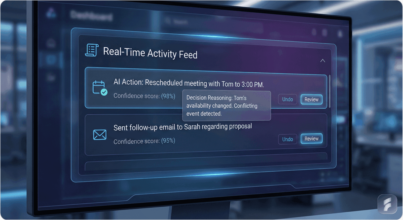 We created a simple activity feed showing exactly what the AI did: "Moved your 2pm call with Tom to 3pm based on traffic delay Tom mentioned in his last email."