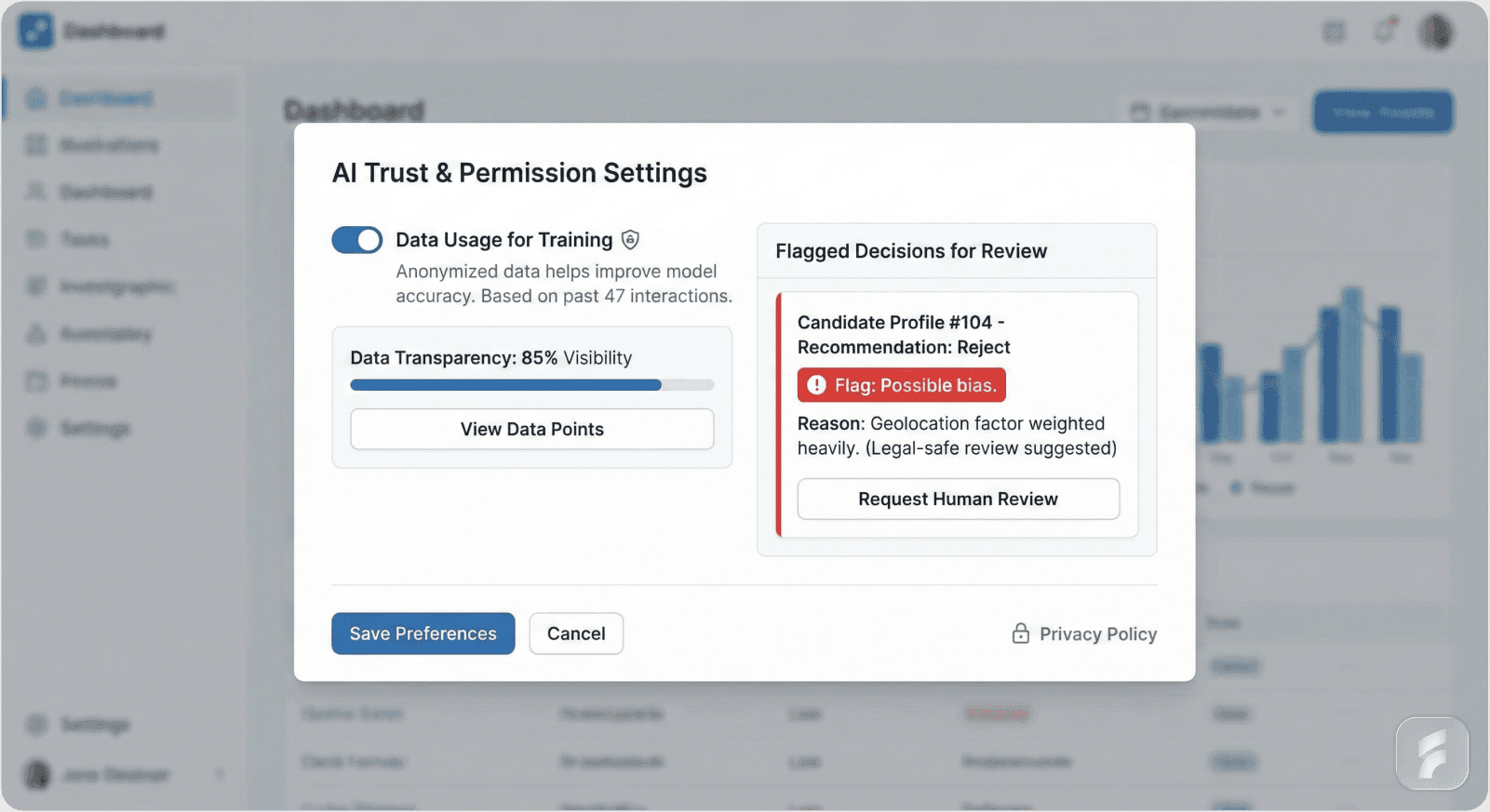 The Difference: Traditional SaaS has privacy settings, sure. But autonomous AI raises unique ethical challenges around bias, consent, and data use that demand transparent integration within workflows, not buried in settings. This isn't just legal compliance, it's fundamental to user trust in systems that act independently.