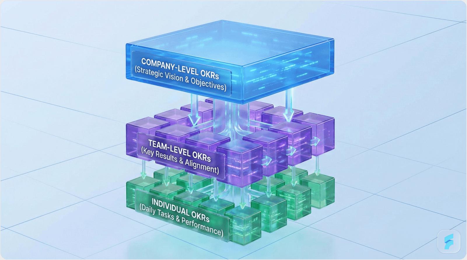 Line of Sight: The clear connection employees understand between individual work and organizational strategic objectives. The three-tier OKR cascade creates line of sight by translating company goals into team deliverables and individual contributions. Improves strategic alignment by 73%.