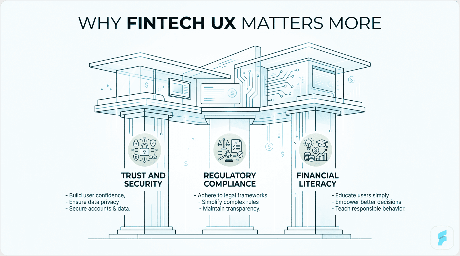 Fintech operates in one of the most heavily regulated industries in the world, and that regulation has direct UX implications.