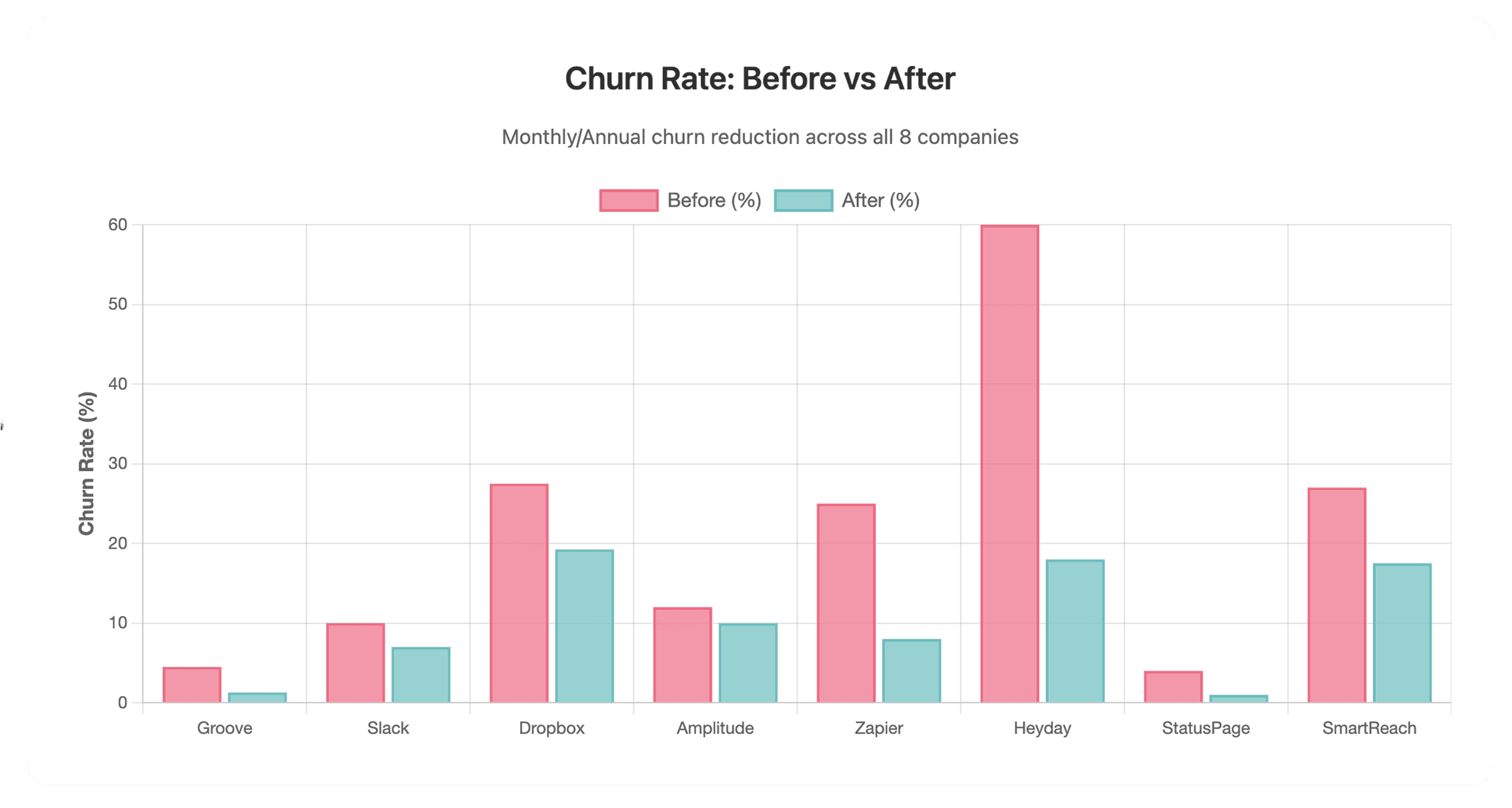 Monthly churn dropped from 4.5% to 1.3% (71% reduction)