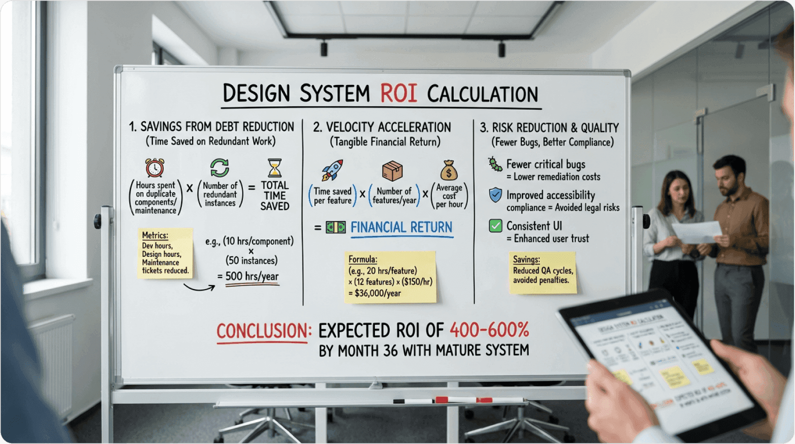 Case studies show 300–600% annual ROI with payback periods as short as 2–4 months once system usage is embedded across teams.Design systems increase resilience, not rigidity