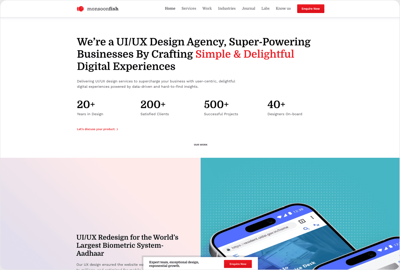 Monsoonfish maintains explicit cybersecurity practice pages, focusing on dashboard design, threat visualization, and design systems for security tools. They emphasize complex security data visualization—a critical capability given that MIT Media Lab studies show 78% of security analysts report cognitive overload from poorly designed telemetry interfaces.