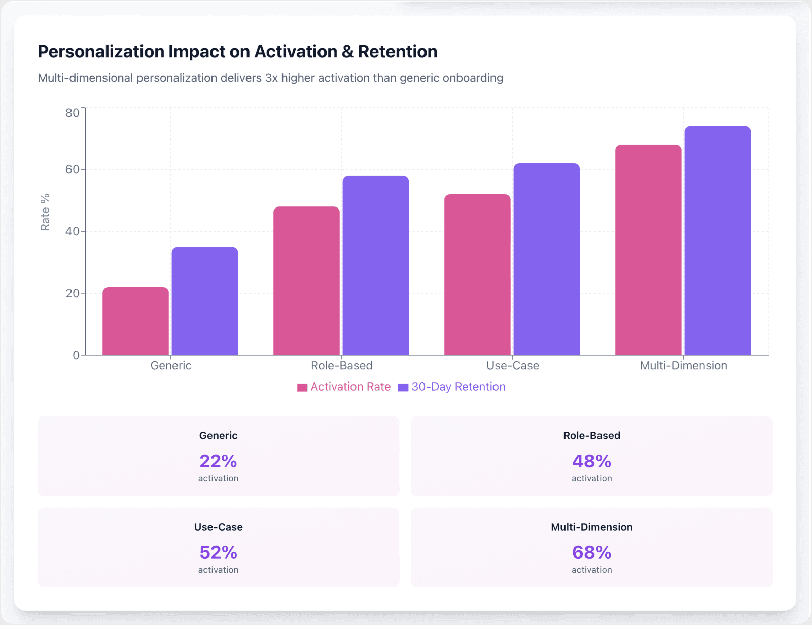 Personalized onboarding increases activation by 30-50% compared to generic, one-size-fits-all approaches